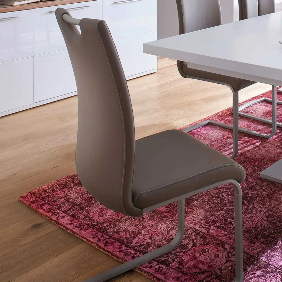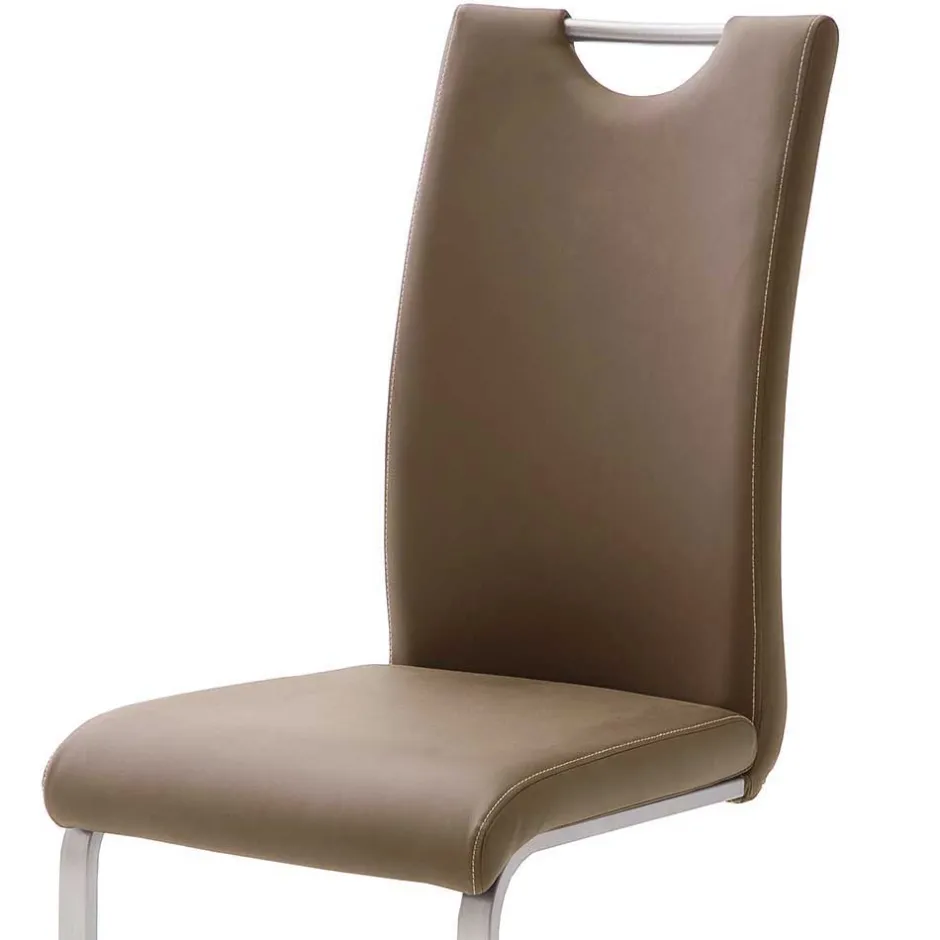 - Kompakte Schwingstühle in Hellbraun und Silberfarben