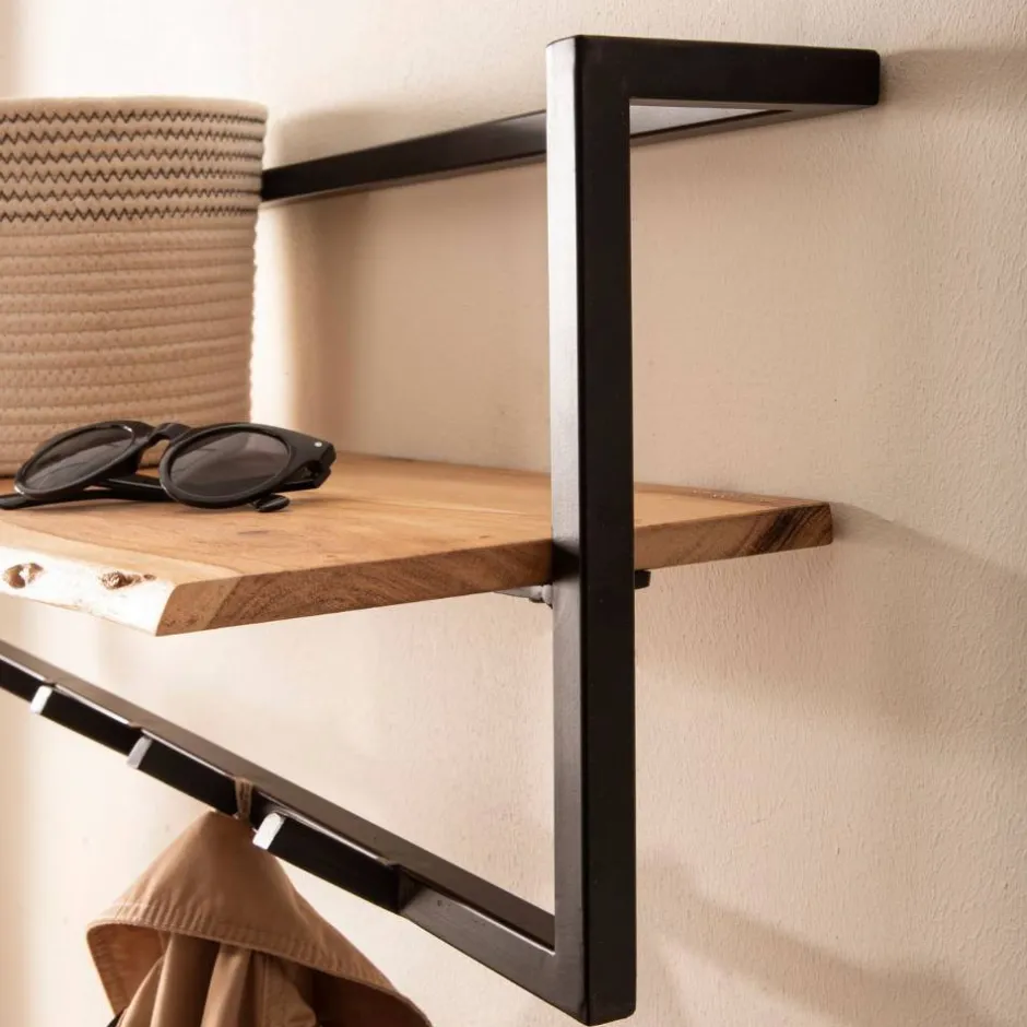 - Rustikale Wandgarderobe in Akazie Naturfarben und Schwarz