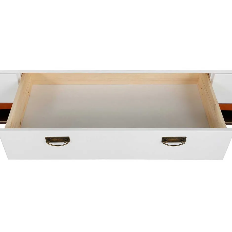 - Oberflächen lackiert in Weiß und Absetzungen in Kirschbaumfarben