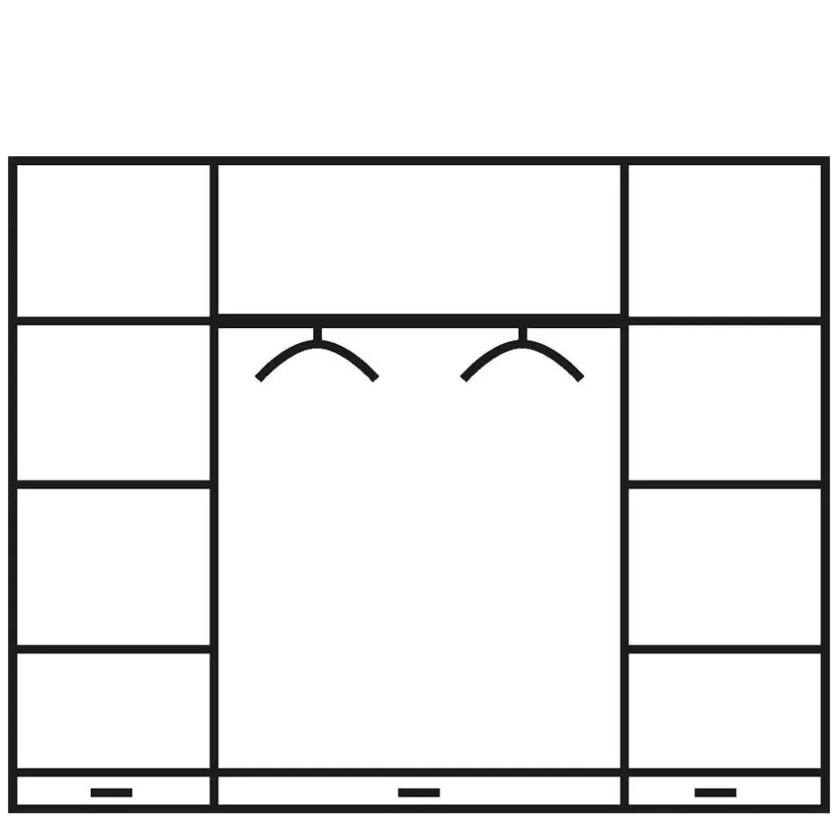 - In den äußeren Fachelementen drei Einlegeböden, mittig ein Holz-Kleiderstange