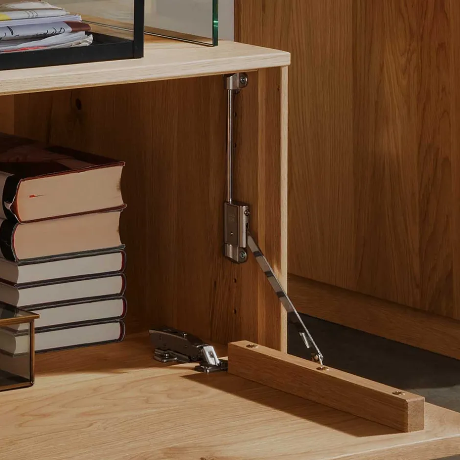 - Rückwand aus Holzwerkstoff, sichtbare Flächen mit Eiche echtholzfurniert und sandgestrahlt