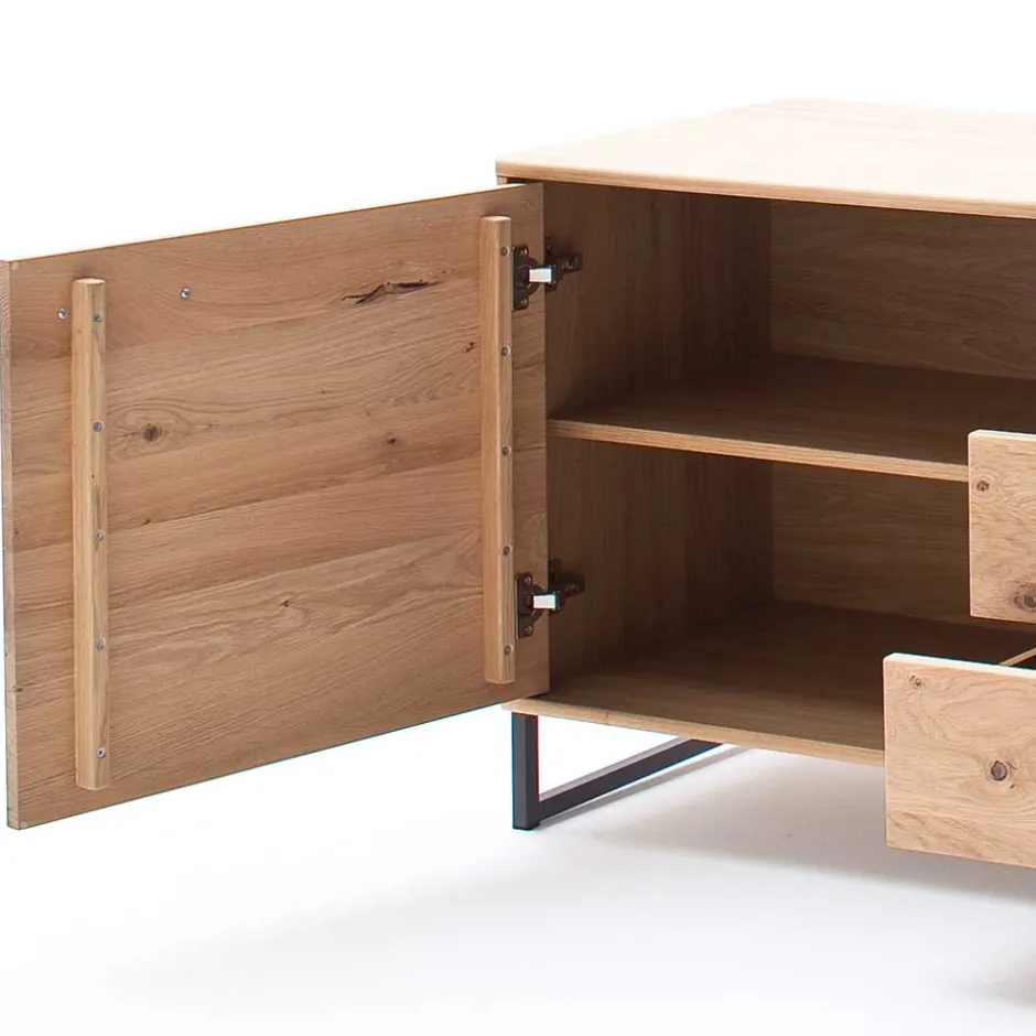 - Aus Spanplatte (Korpus) und Asteiche Massivholz (Front) gefertigt