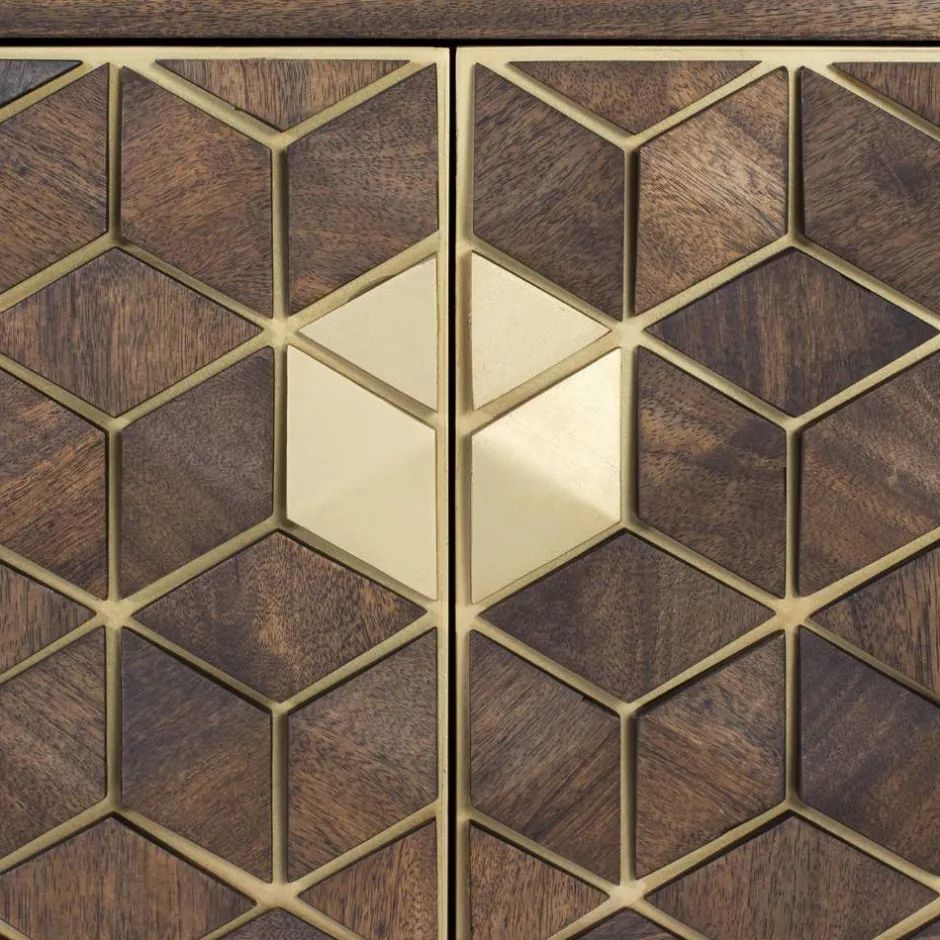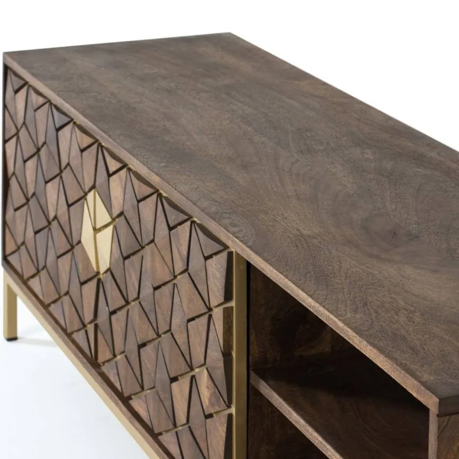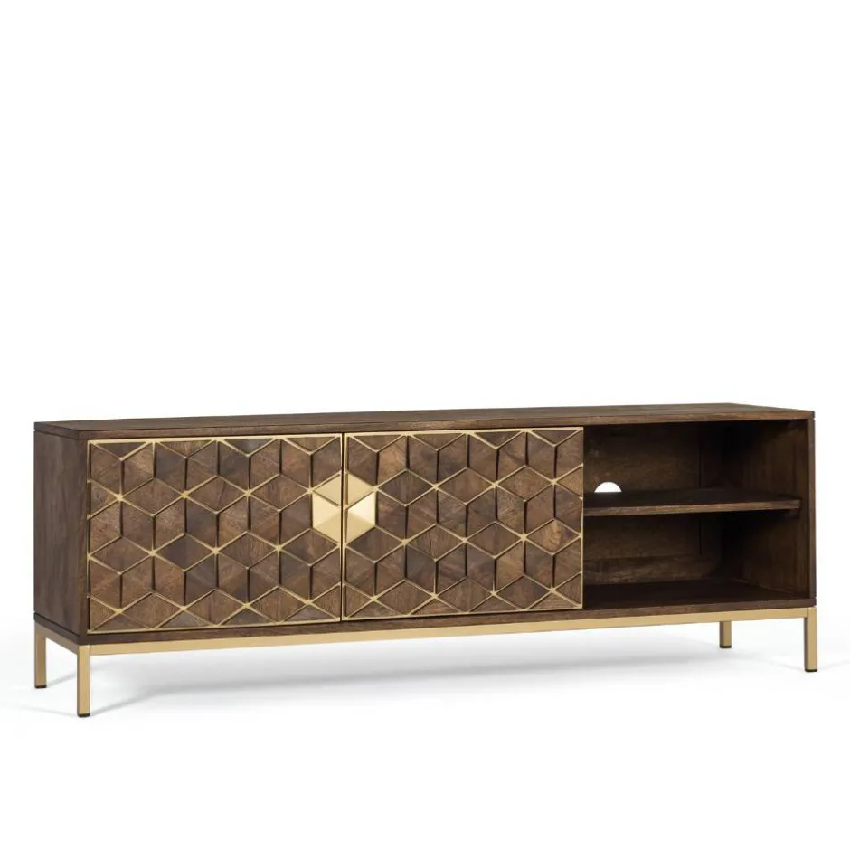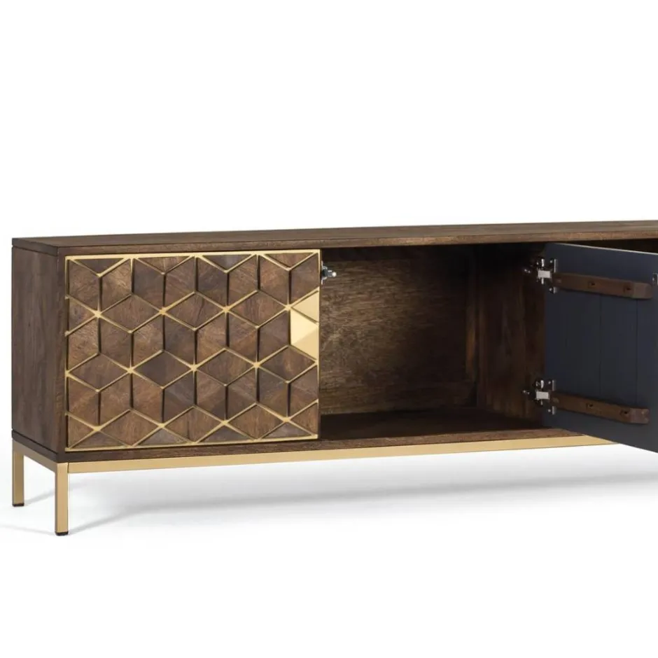 - Attraktives Lowboard in Walnussbraun und Goldfarben