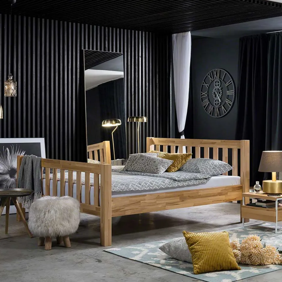 - Zeitloses Bett in Kernbuchefarben