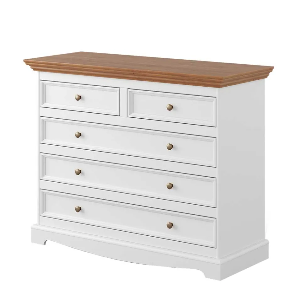 - Geräumige Kommode in Weiß und Eichefarben