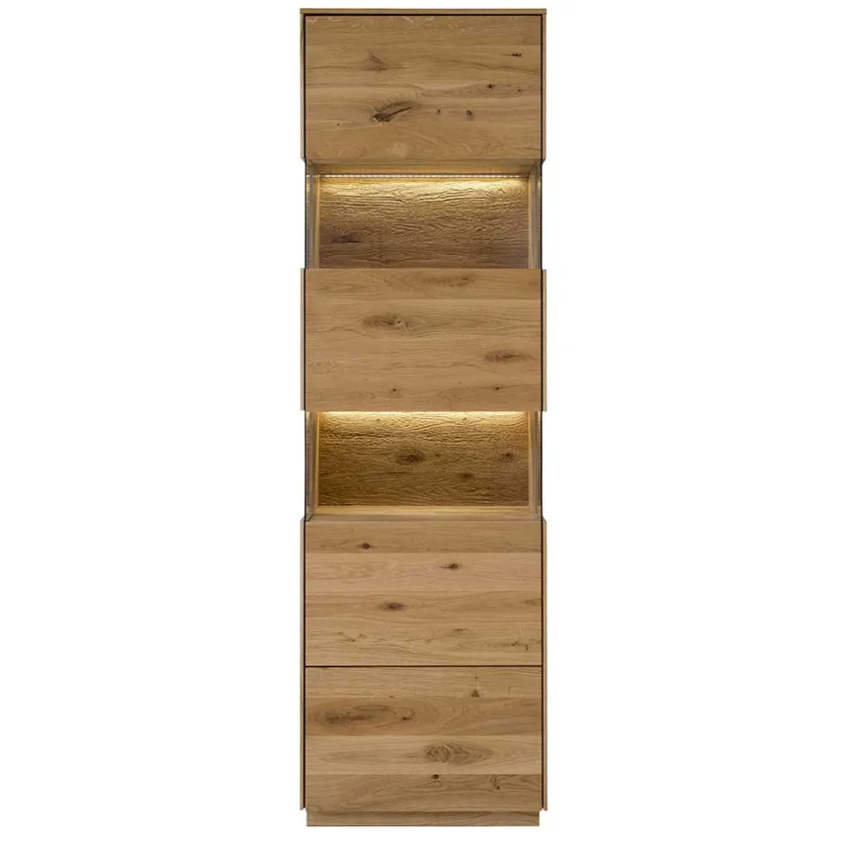 - Sichtbare Rückwand aus sandgestrahltem Holz mit plastischer Struktur