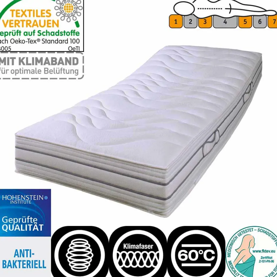 - Die Matratzen werden ab einer Größe von 160×200 cm mit zwei Kernen und einem Bezug geliefert