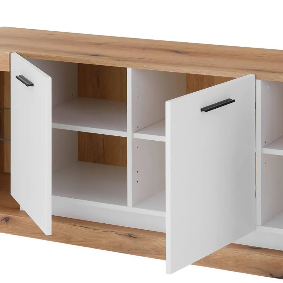 - Schicke Wohnwand in Weiß supermatt und Eichefarben