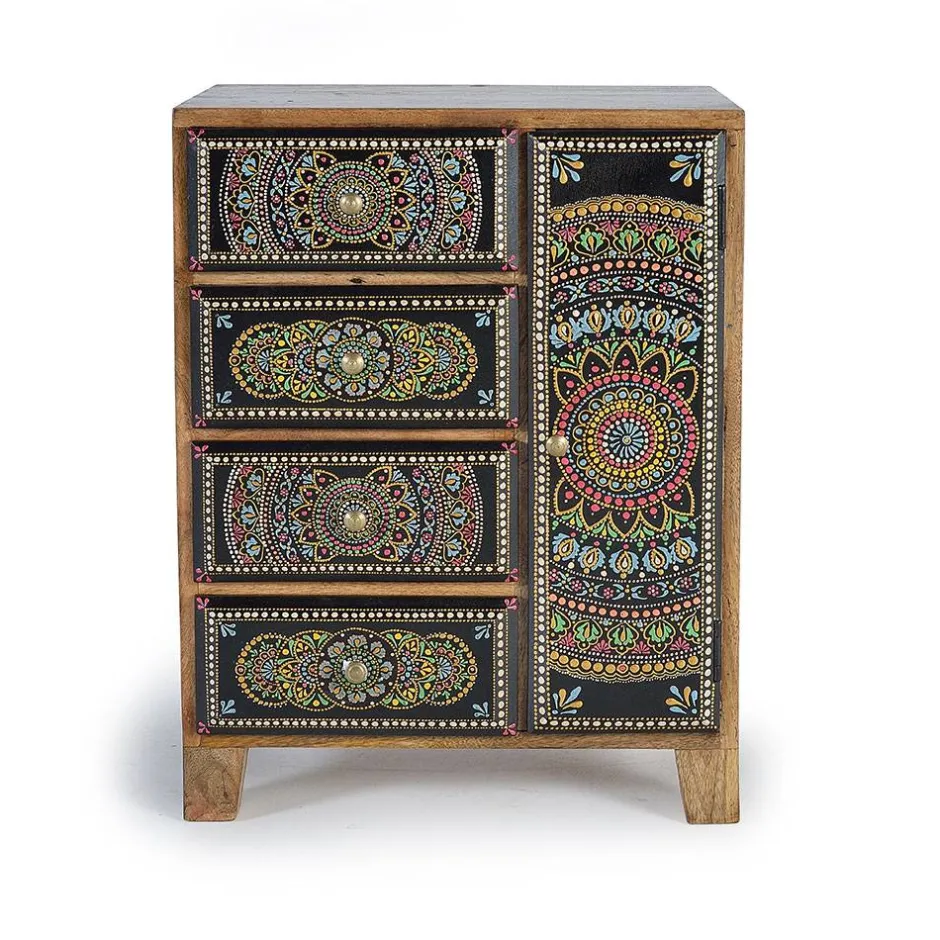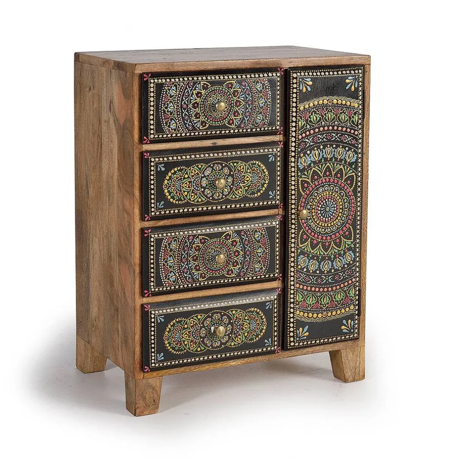 - Auffallende Kommode in Mangoholz Naturfarben und Schwarz