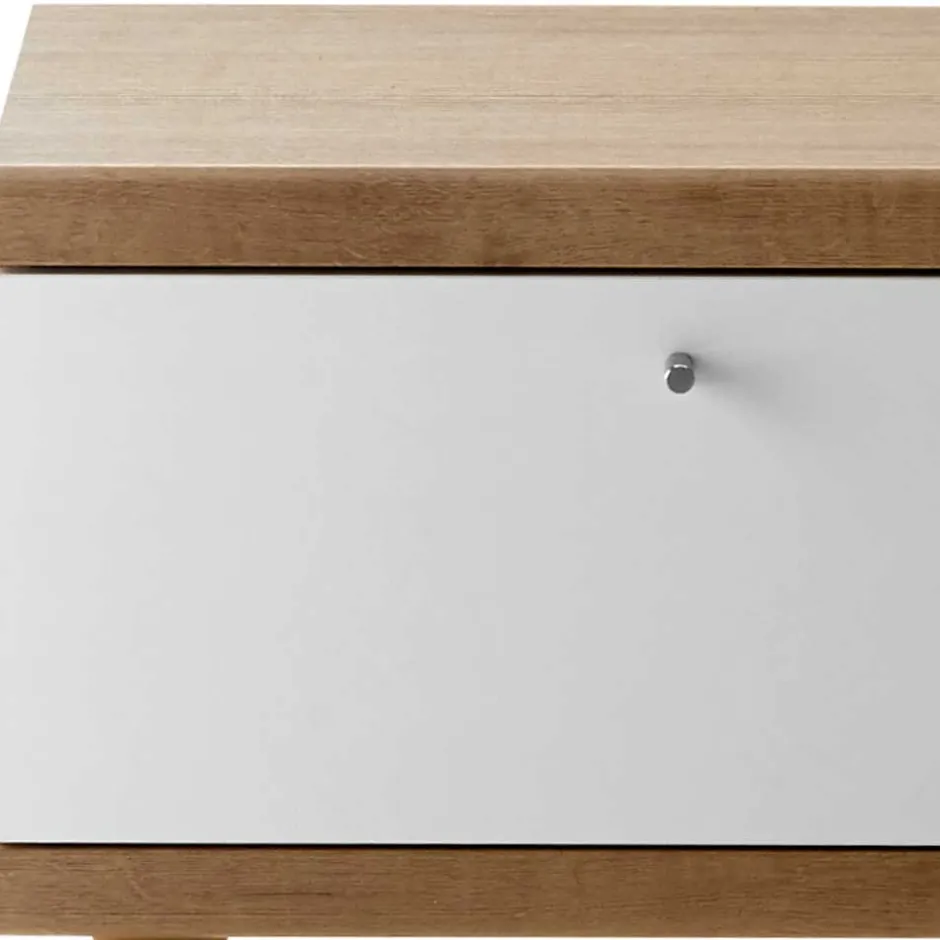 - Trendige Nachtkommode in Weiß und Eichefarben