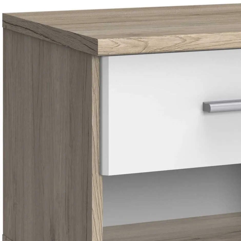 - Kompakte Nachtkonsole in Weiß und Eiche San Remo