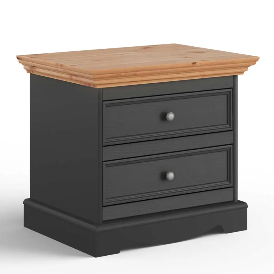 - Geräumige Nachtkommode in Grau und Kieferfarben
