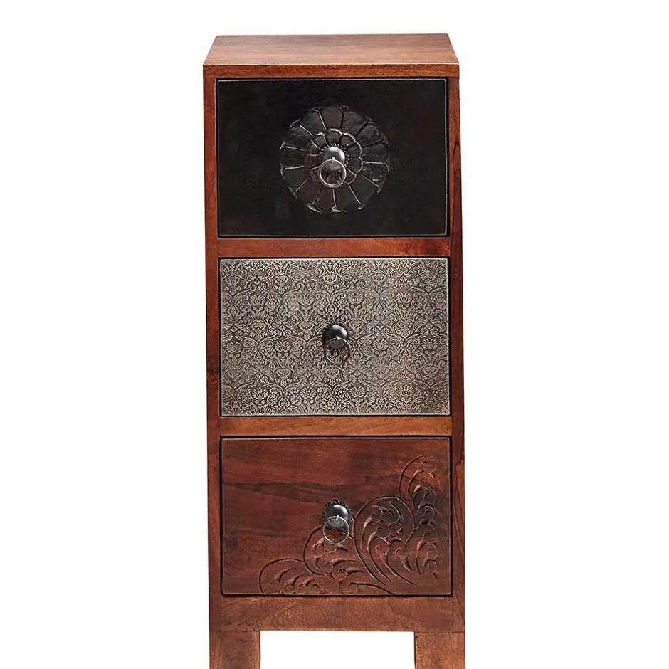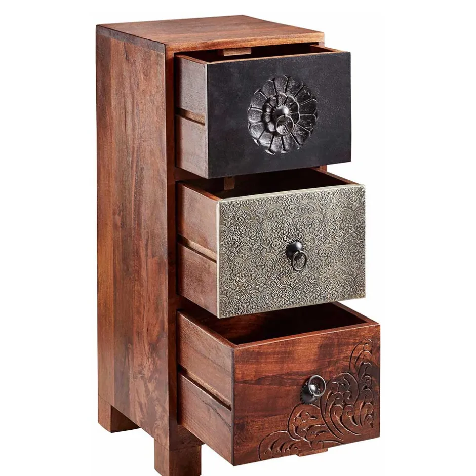 - Trendige Schubladenkommode in Akaziefarben, Grau und Braun