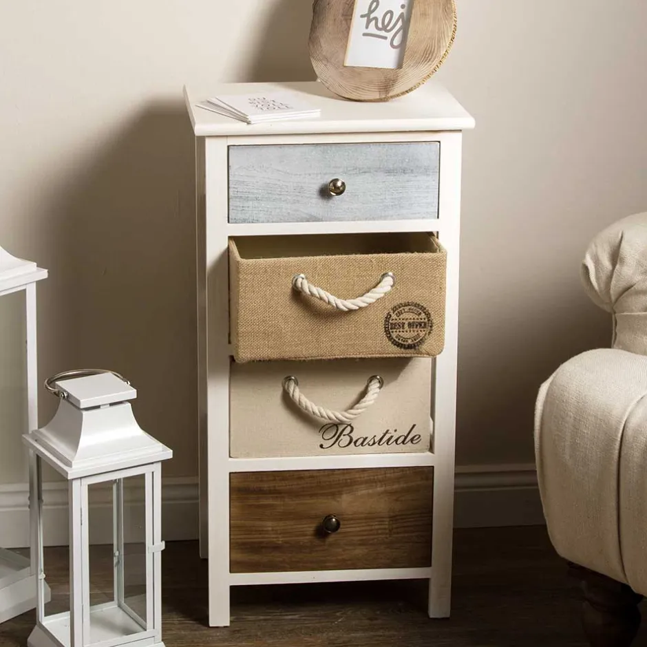 - Vier Schubladen mit unterschiedlich gestalteten Fronten