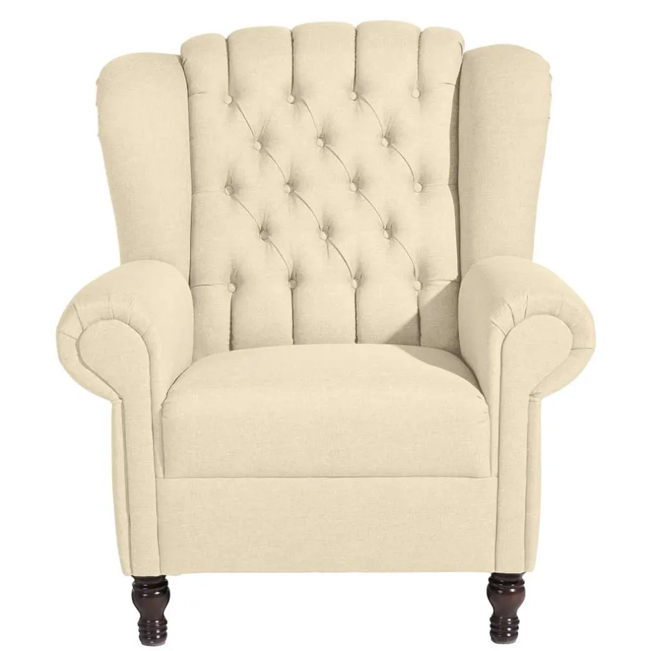 - Bequemer Sessel in Beige und Nussbaumfarben