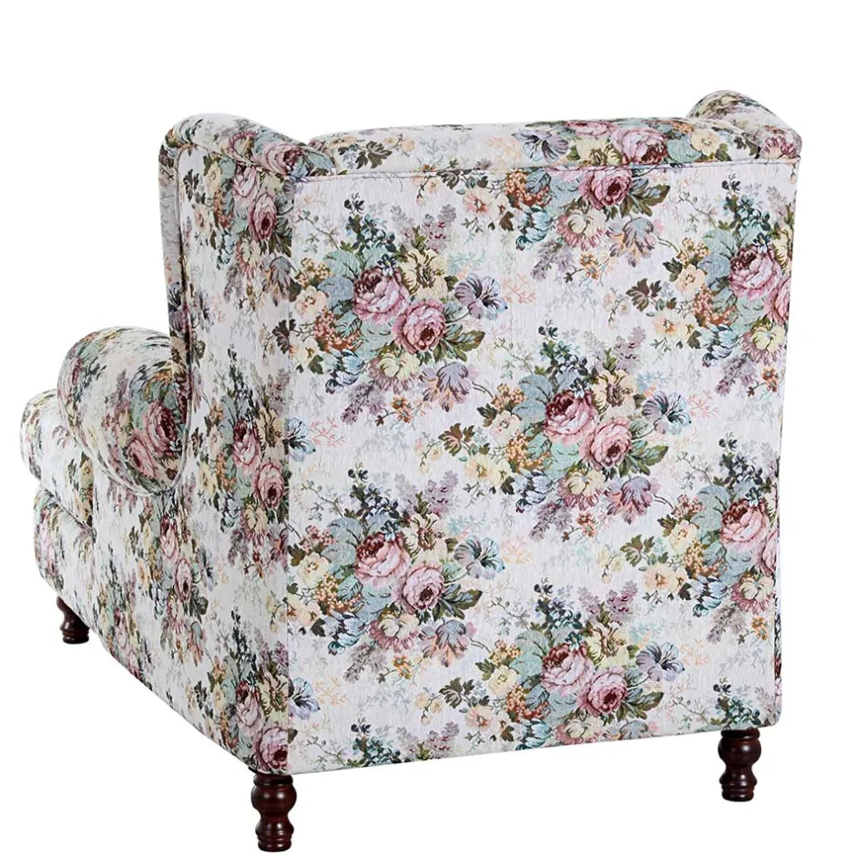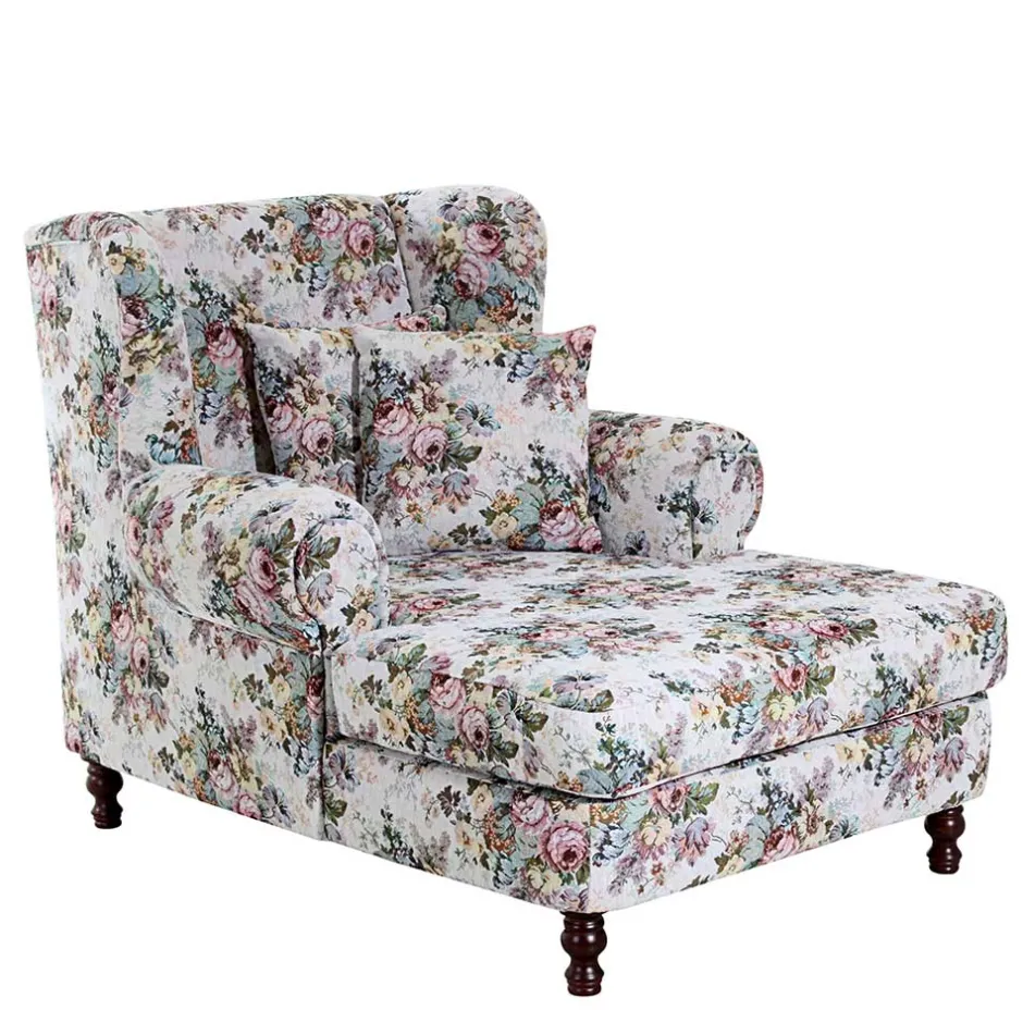 - Charmanter Big Sessel in Bunt geblümt und Nussbaumfarben