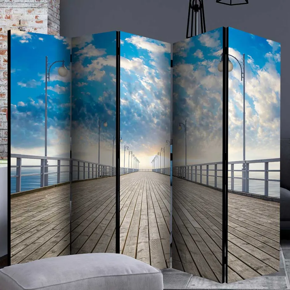 - Idyllischer Paravent in Blau- und Grautönen