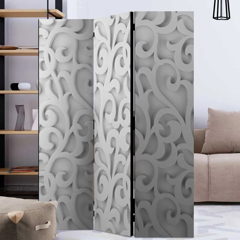 - Attraktiver Paravent in Weiß- und Grautönen