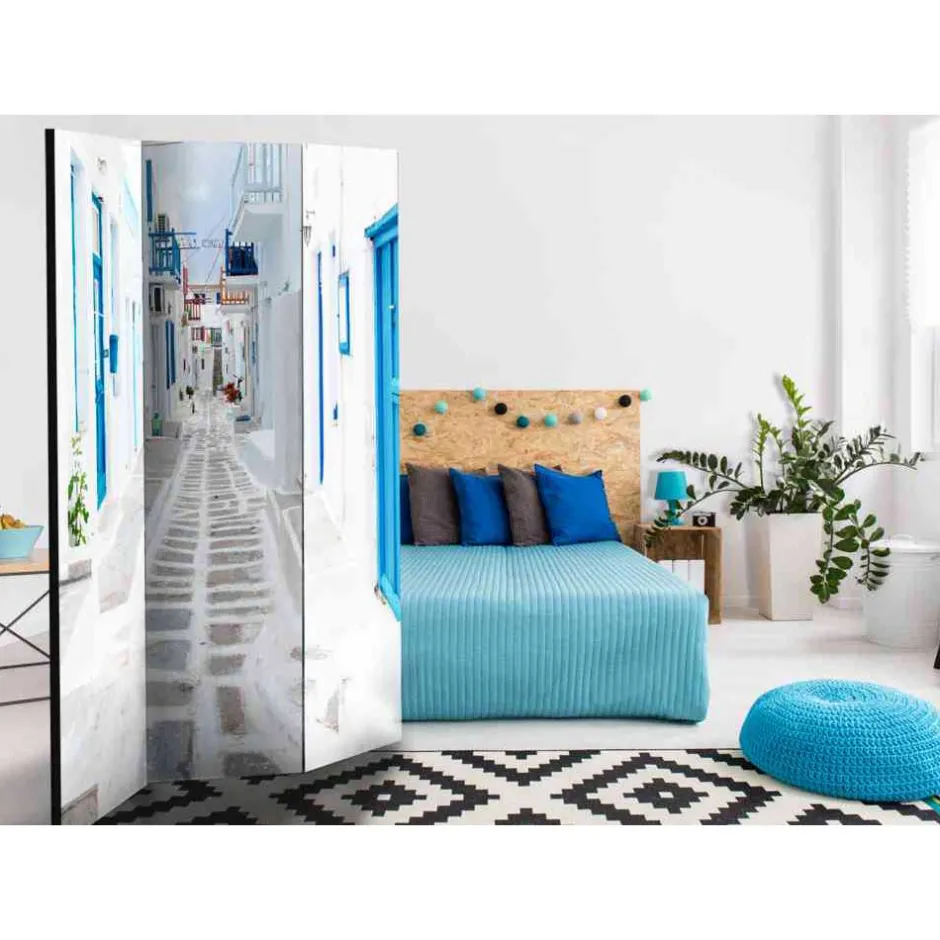 - Eindrucksvoller Paravent in Weiß und Blau