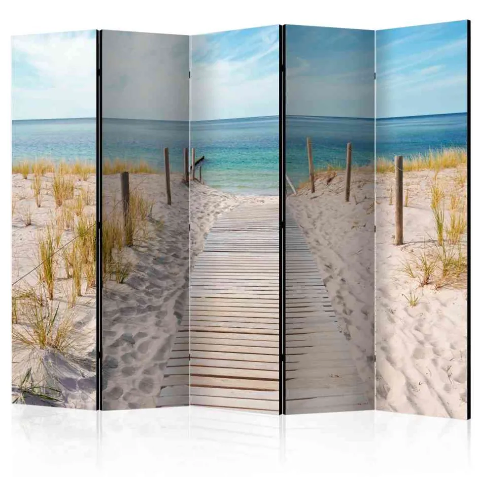 - Geschmackvoller Paravent in Beige und Blau