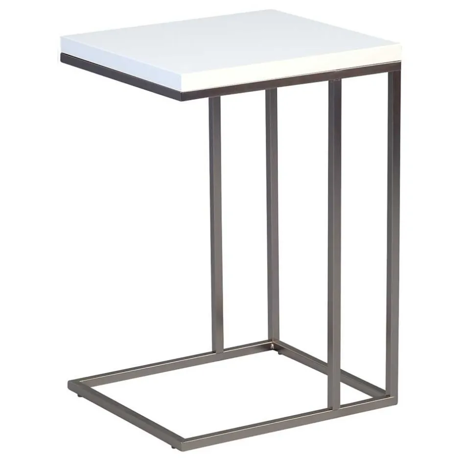 - Kraftvoller Beistelltisch in Hochglanz Weiß und Silberfarben