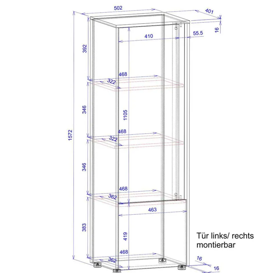 - Zwei Türen, innen drei Einlegeböden