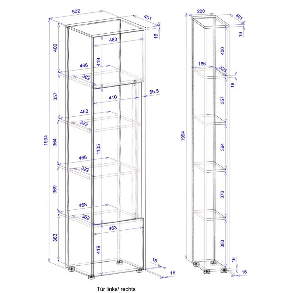 - Maximale Belastbarkeit je Einlegeboden 10 kg