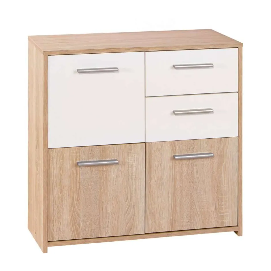 - Dezente Kommode in Weiß und Sonoma Eiche