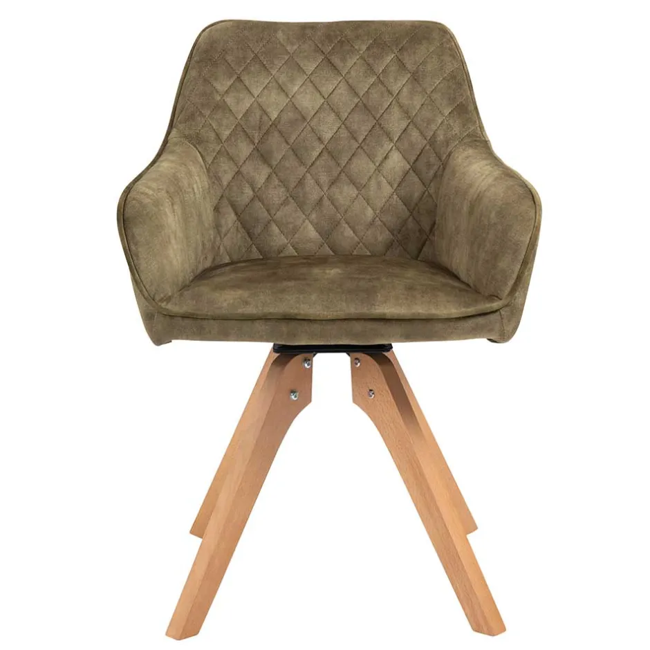 - Souveräner Polster-Drehstuhl in Oliv und Eichefarben