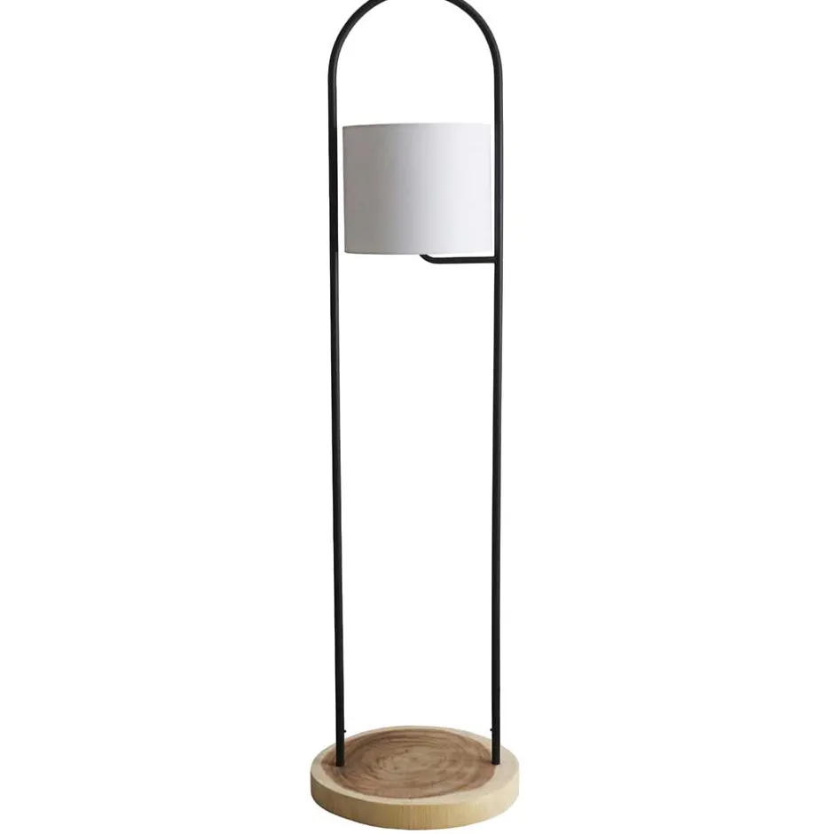 - Extravagante Stehleuchte in Cremeweiß, Schwarz und Akaziefarben