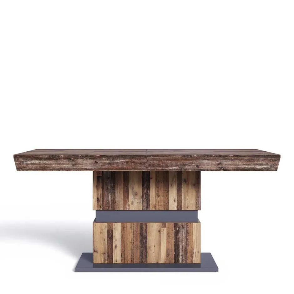 - Beeindruckender Esstisch in Altholzoptik und Dunkelgrau