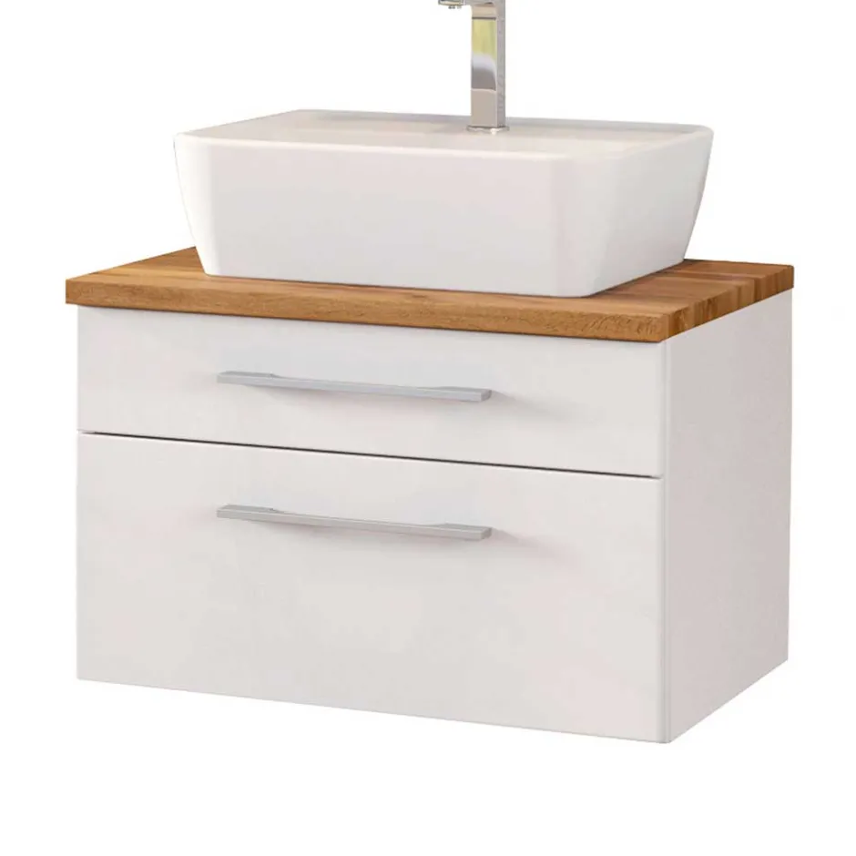 - Klasse Badmöbel Set in Weiß und Wildeichefarben