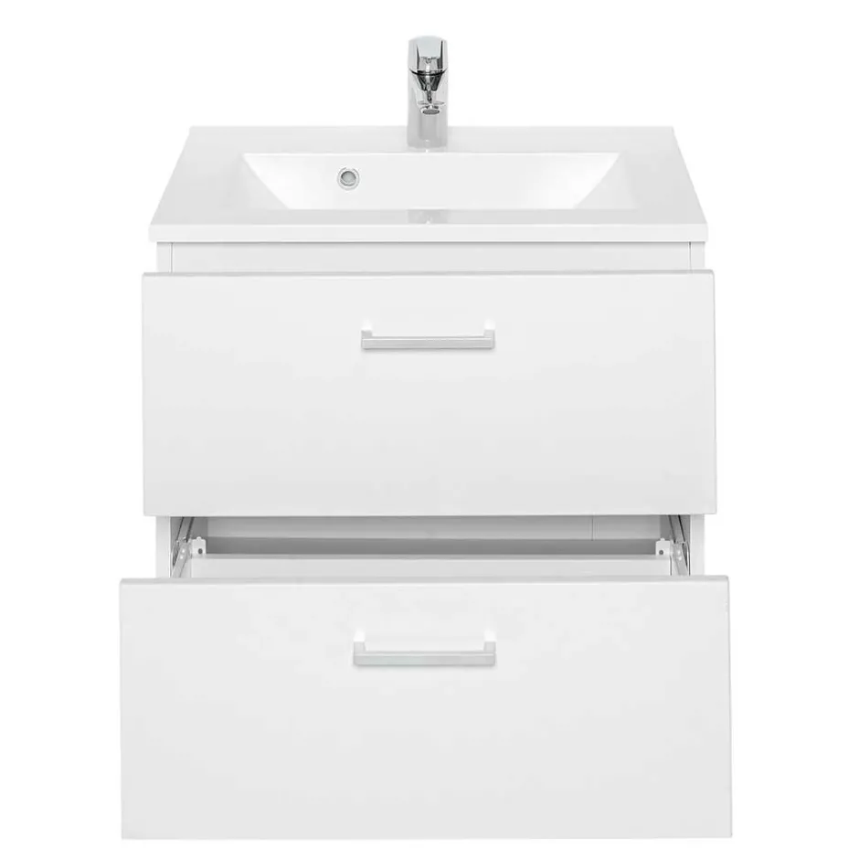 - Pflegeleichtes Mineralgussbecken in Weiß inklusive, Lieferung ohne Armaturen, Löcher zur Montage der Armaturen bereits vorgefertigt