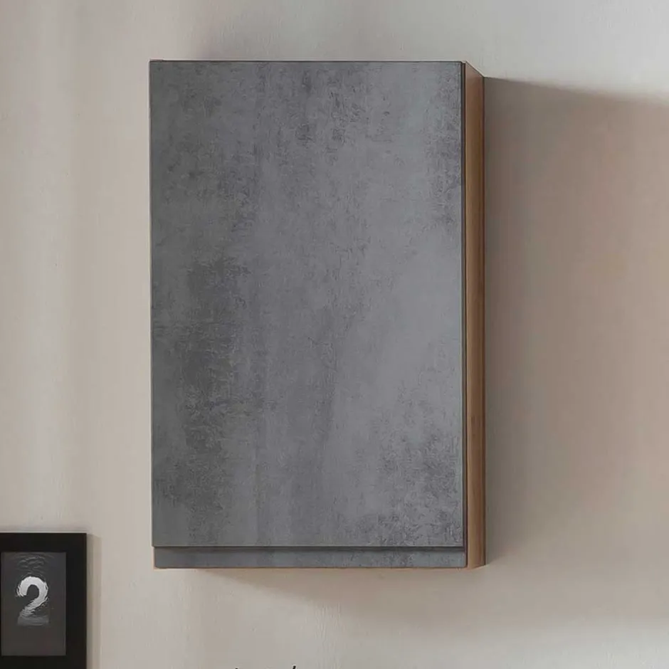 - Attraktiver Bad Hängeschrank in Betongrau und Wildeichefarben