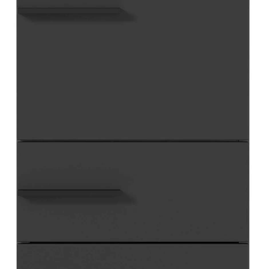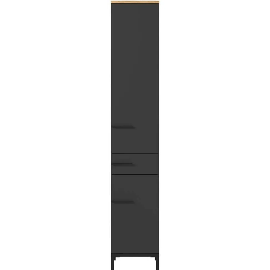 - Attraktiver Bad Hochschrank in Dunkelgrau und Eichefarben