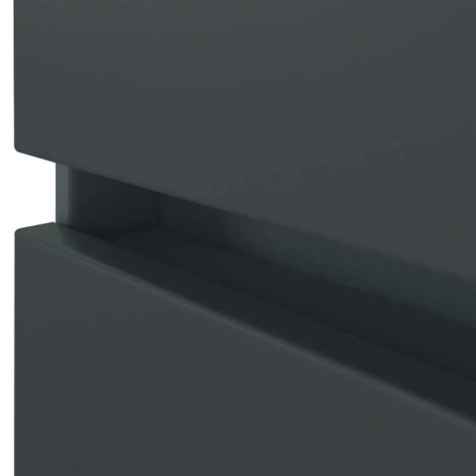 - Korpus melaminbeschichtet, Front foliert in matt Dunkelgrau, Rückwand in Weiß