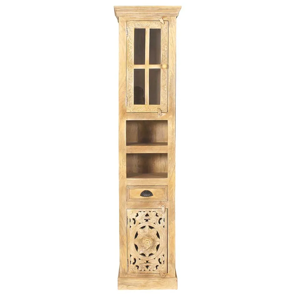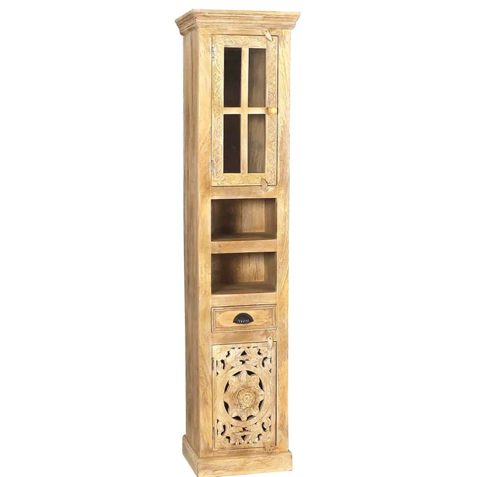 - Dekorativer Bad Hochschrank in Mangoholz Sandfarben