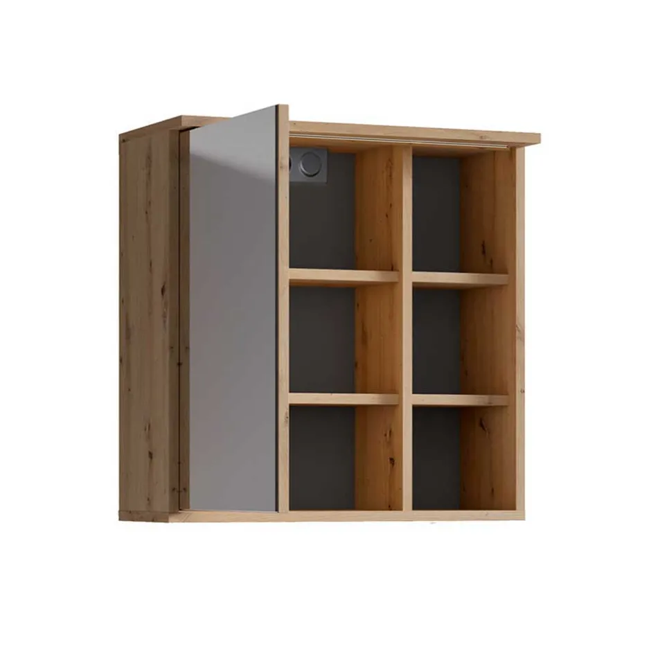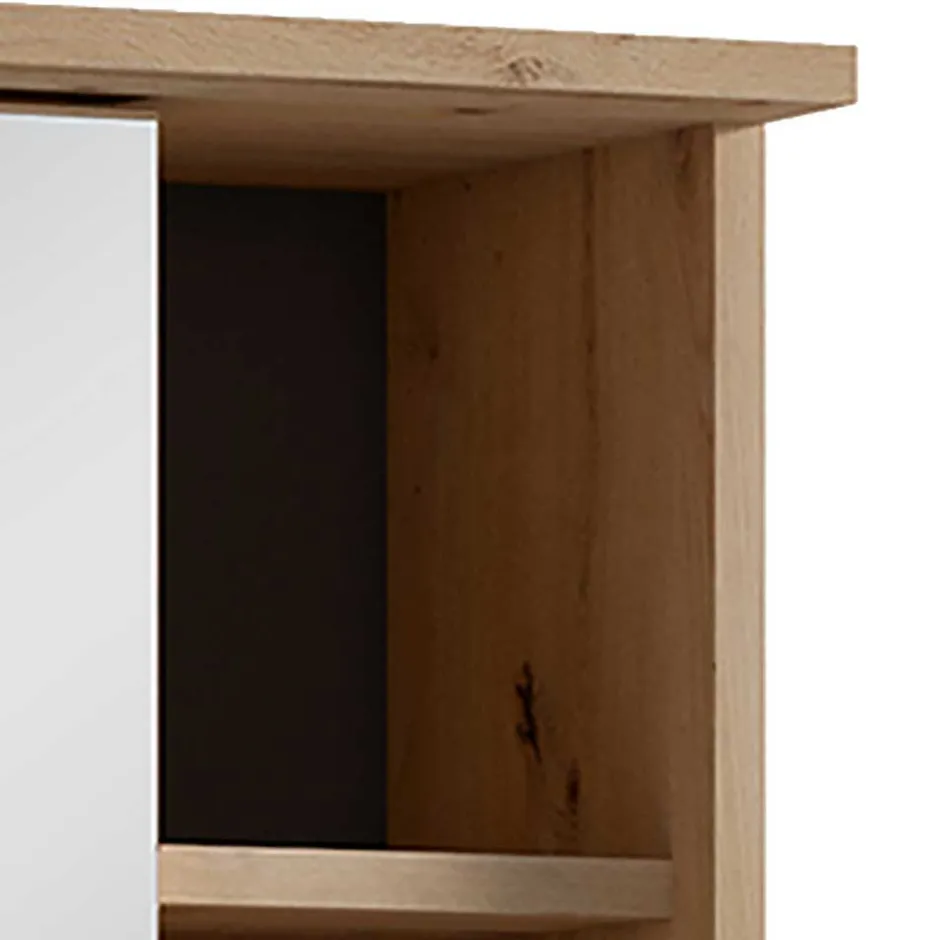 - Eine Spiegeltür, innen zwei Einlegeböden und praktische Stecker-Schalter Box
