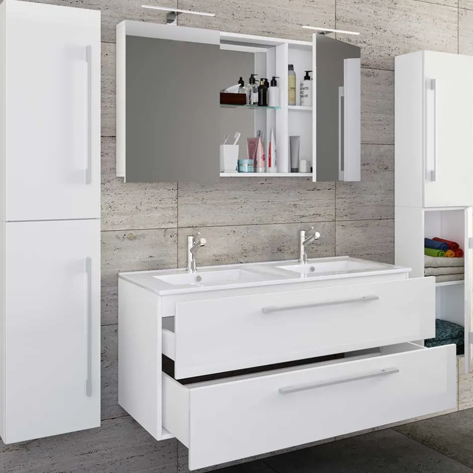 - Drei Spiegelflächen, in der Mitte zurückgesetzt