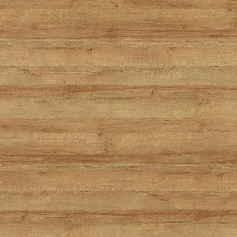 - Melaminbeschichtete Oberflächen in Weiß und Holzoptik, glänzende Front, Massivholz klar lackiert