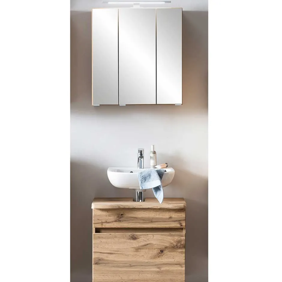 - Oberflächen in Holzoptik Wildeiche, Front tiefgezogen foliert, Seiten und Deckplatte melaminbeschichtet, fühlbare Struktur