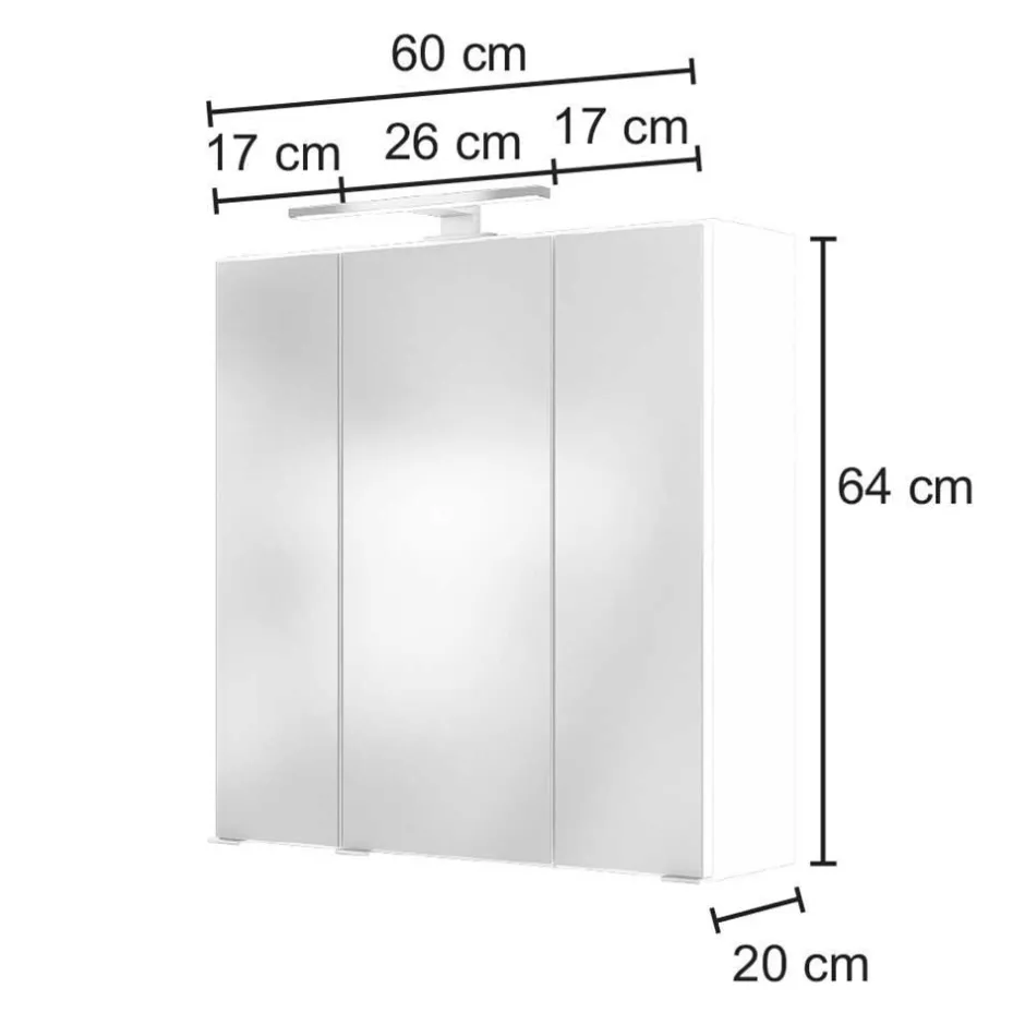 - Maße ohne Aufbauleuchte: BxHxT: 60x64x20 cm