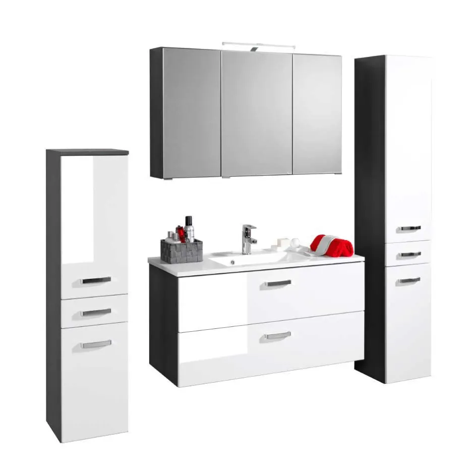 - Ansprechendes Badmöbelset in Graphitgrau und Weiß