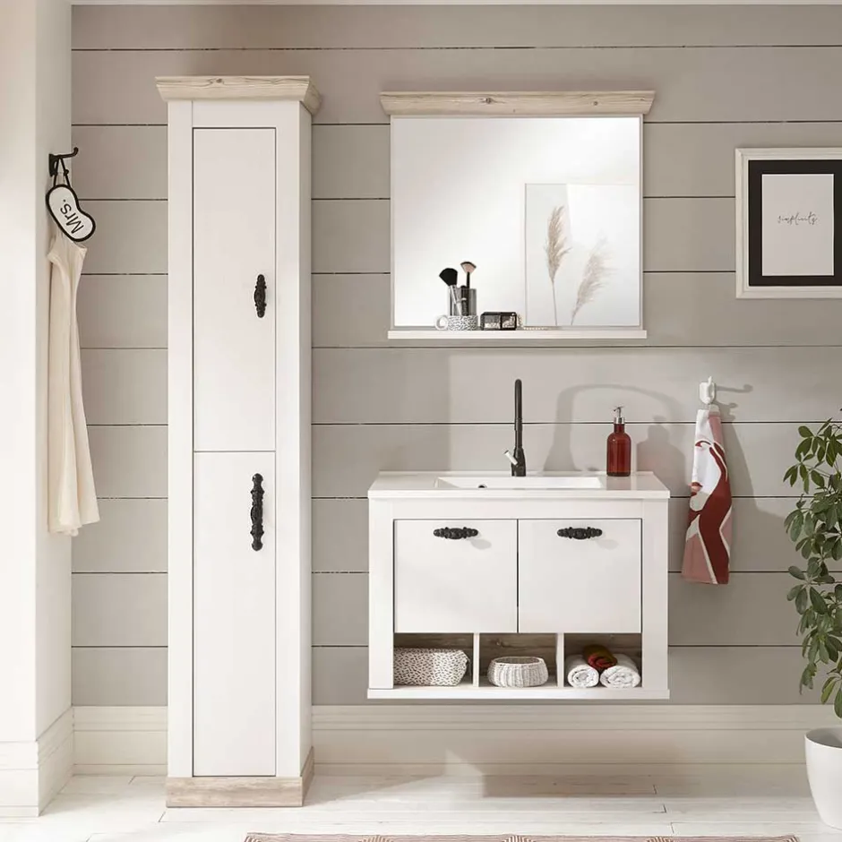 - Großartige Badmöbel Kombination in Weiß und Pinienfarben