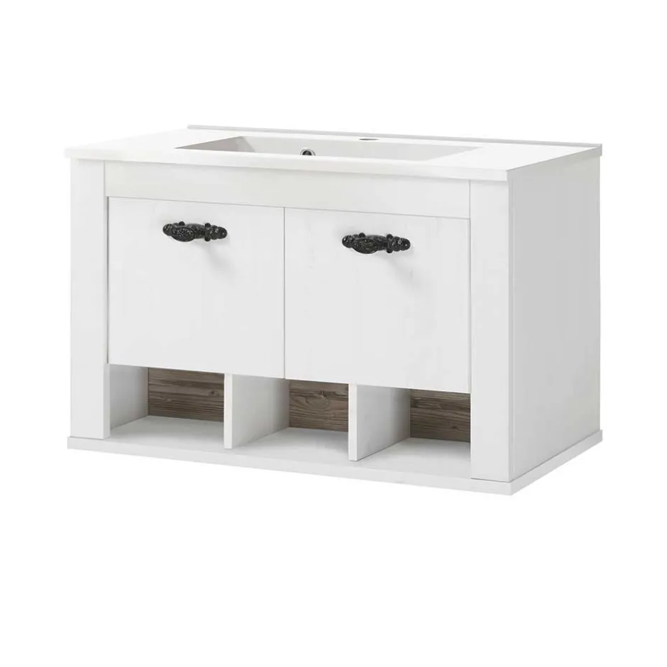- Inklusive pflegeleichtem Waschbecken aus Mineralguss, ohne Armaturen