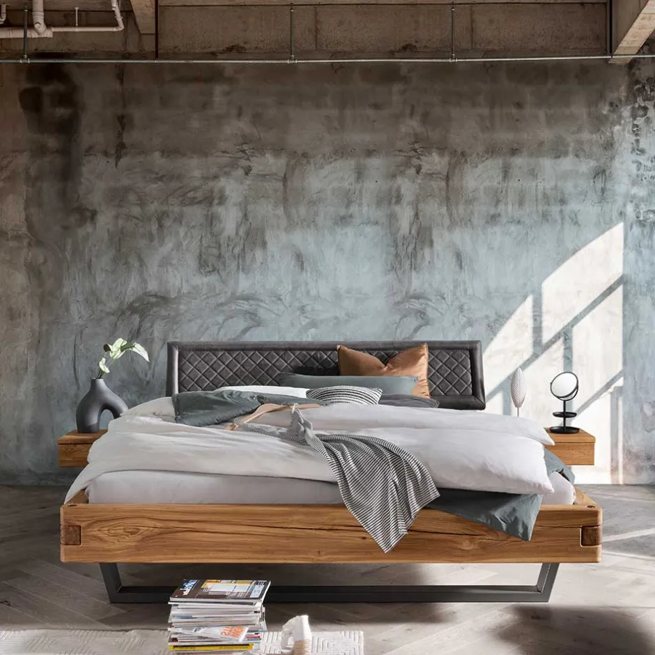 - Bettrahmenquerschnitt (BxT): 8×20 cm, an den Eckpunkten rustikal ausgeklinkt