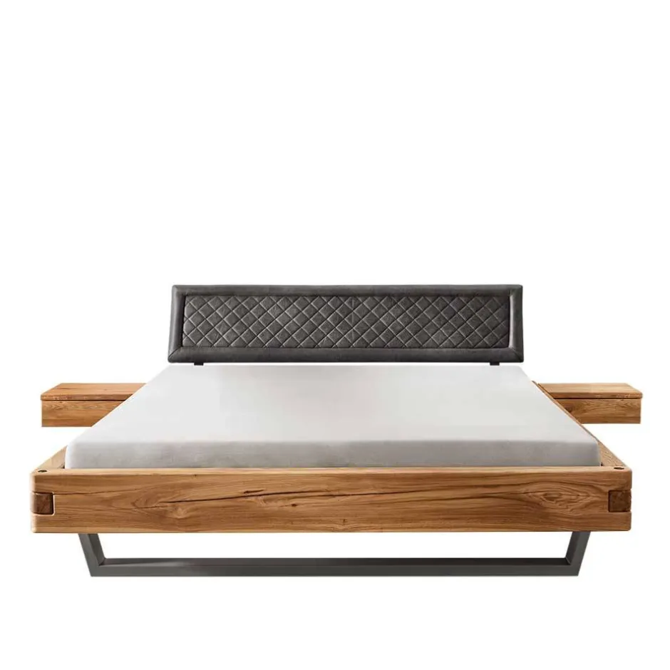 - Trendstarkes Balkenbett in Wildeichefarben, Grau und Anthrazit