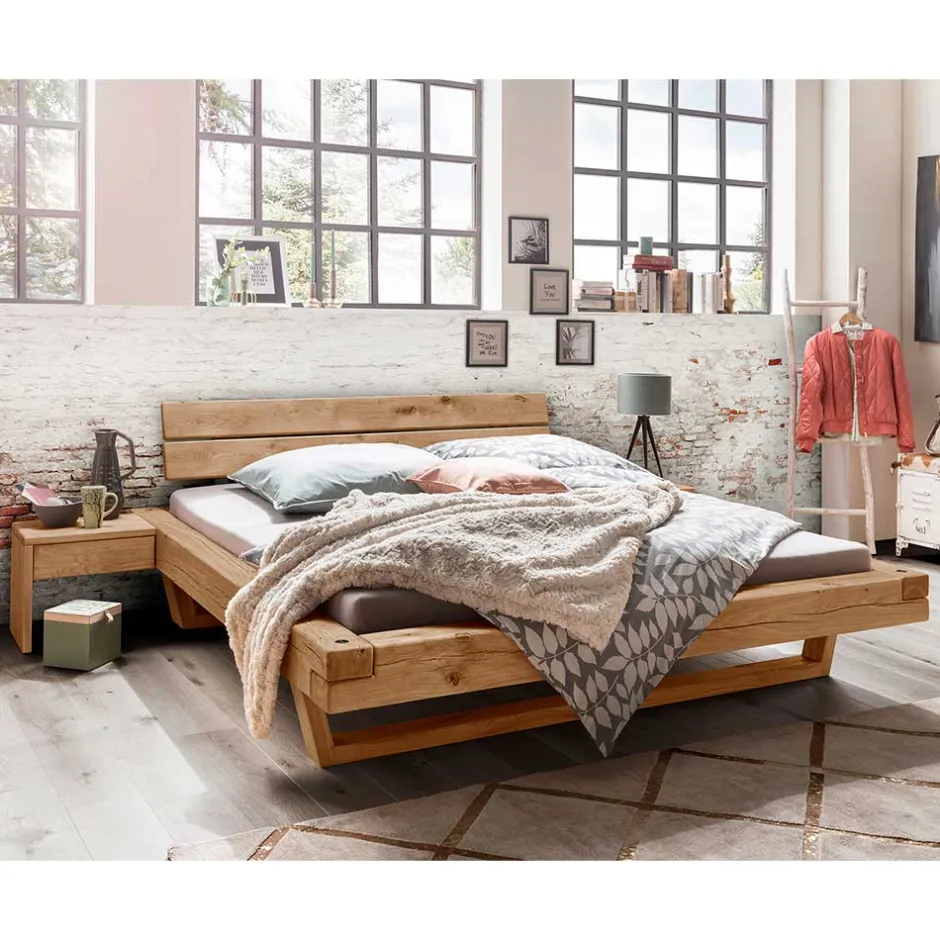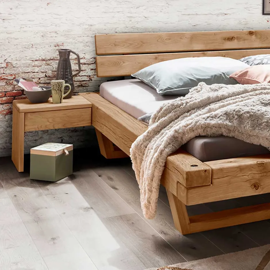 - Markante Balkenbett Kombination in Wildeichefarben