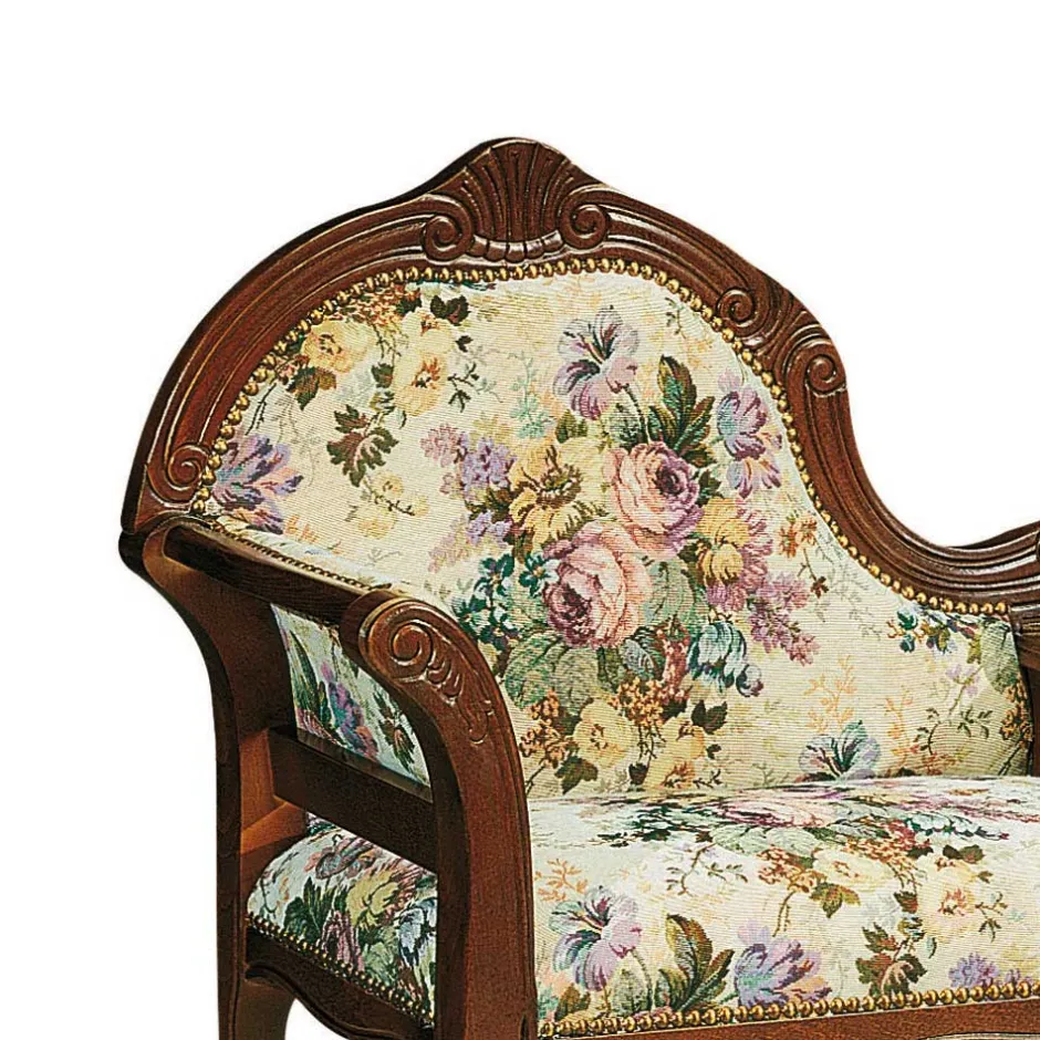 - Komfortable Rückenlehne mit fein geschnitztem Rahmen