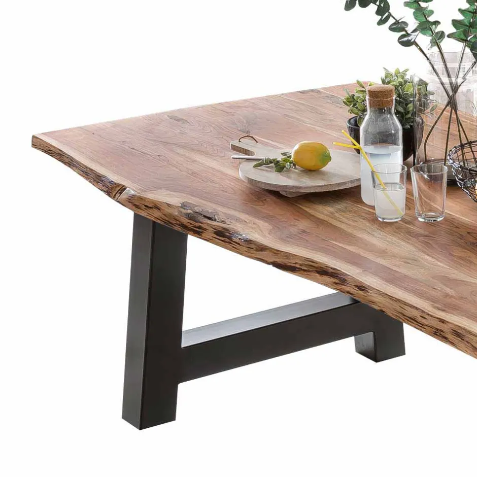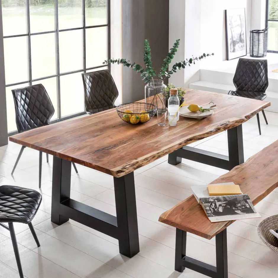 - Geschmackvoller Esstisch in Akaziefarben und Schwarz